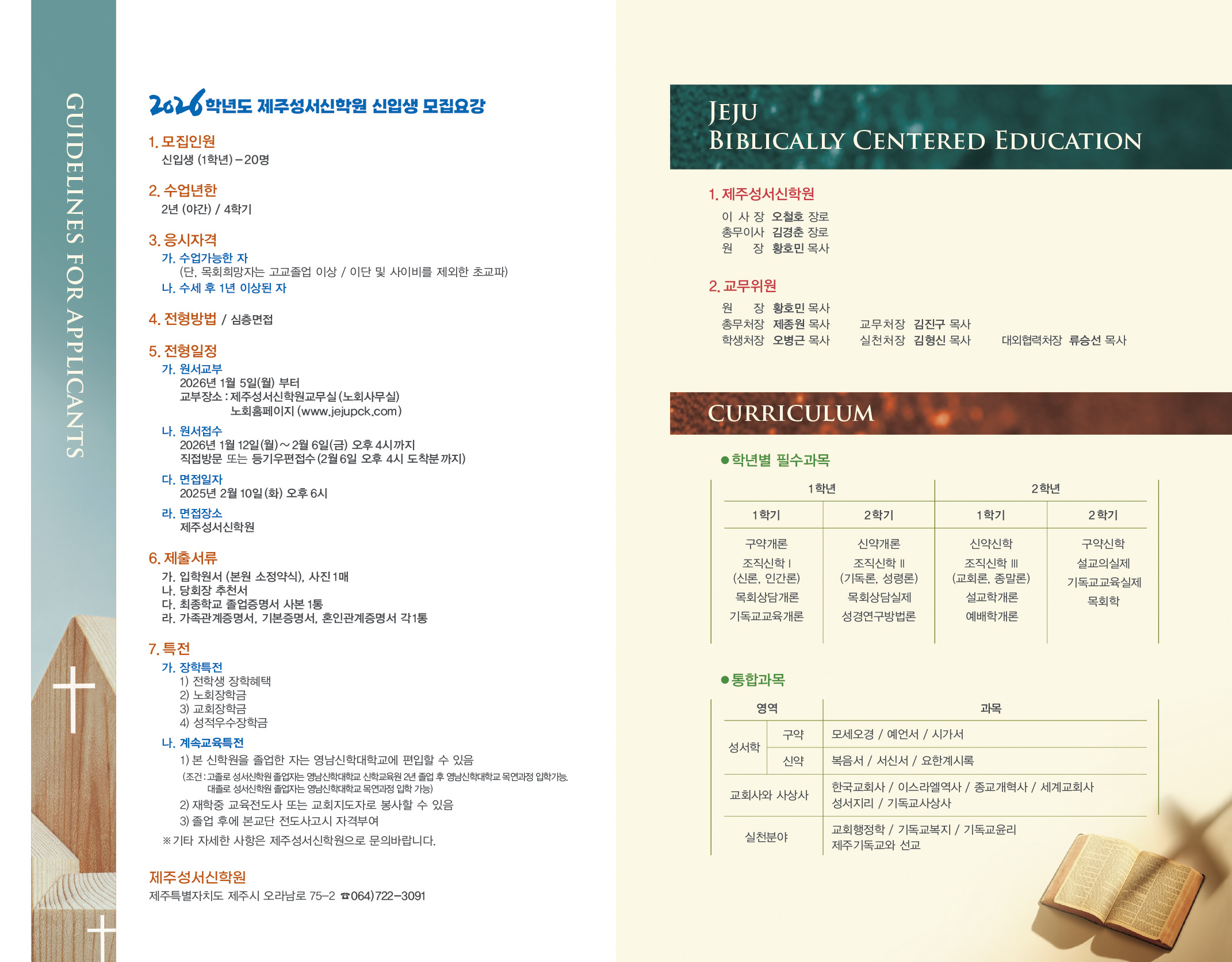 2026학년도성서신학원 신입생 모집요강